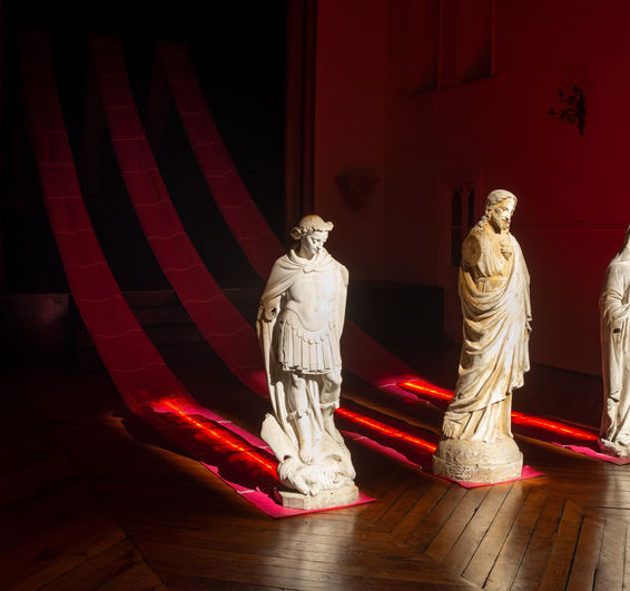 Instalación que hace un cruce entre la historia del lugar (monasterio religioso que educaba niñas hijas de obreros principalmente a mediados del siglo XX) y el hacer propio de la artista a modo de propuesta, y que surge de las reflexiones entorno a las ideas de arquetipo, historia y memoria colectiva. La artista utiliza las figuras originales que fueron parte de la ornamentación religiosa en el espacio que era la Capilla y lugar de oración del Monasterio.
